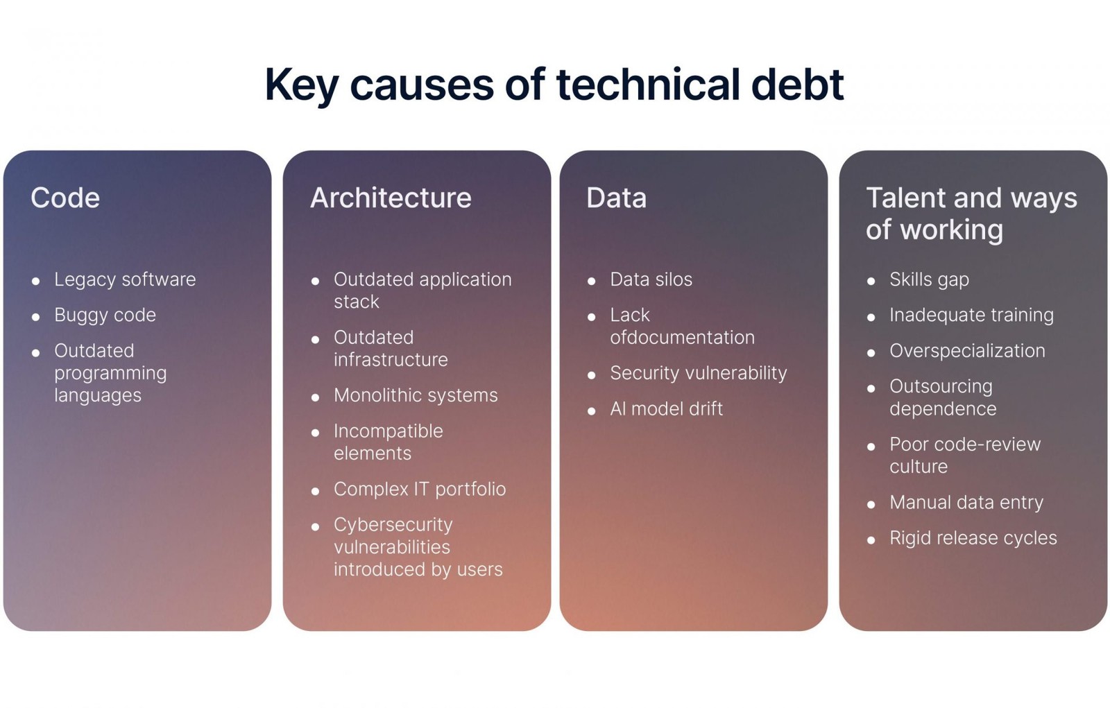 Everyday decisions can become causes of technical debt: a quick workaround stays in the codebase, refactoring gets postponed, etc. As you accumulate technical debt, changes take longer to implement, and even small updates require coordination across multiple components. As a result, development teams spend more time maintaining existing systems and less time delivering new features.