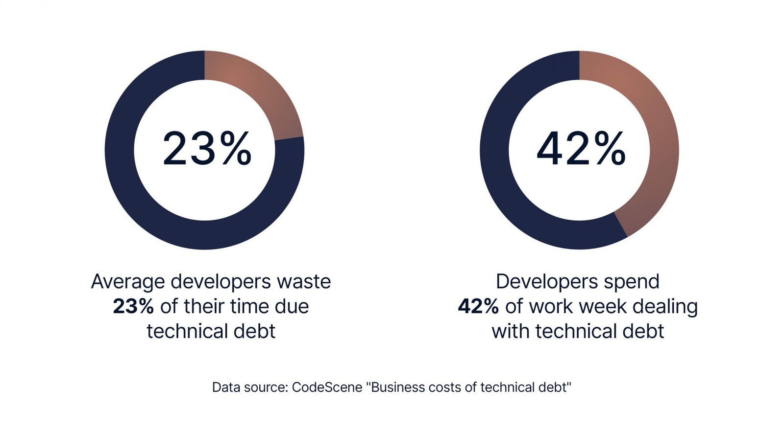 In its report “Business Costs of Technical Debt,” CodeScene claims that managing technical debt can improve feature delivery efficiency by at least 25%. To achieve this, development teams need to address technical debt directly and plan dedicated time for it alongside feature work.